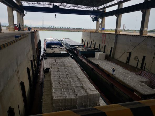 衢州港衢江港區(qū)大路章作業(yè)區(qū)位于衢州市衢江區(qū)樟潭街道內(nèi),北臨衢江,南至320國道,西起上山溪,東至下山溪,位于安仁鋪樞紐的下游,已建高安大橋的上游。該衢江港區(qū)大路章作業(yè)區(qū)一期工程由浙江數(shù)智交院科技股份有限公司進(jìn)行設(shè)計,于2021年12月竣工驗收,同時取得1~13號泊位的港口經(jīng)營許可證(浙衢港經(jīng)證0007號),包括500噸級泊位13個(按1000噸級設(shè)計),其中1~5號為散貨泊位、6~9號為多用途泊位、10~11號為全天候泊位、12~13號為散貨泊位,配套建有散貨堆場、件雜貨堆場、重箱堆場、簡易堆場、倉庫、全天候倉庫、生產(chǎn)生活輔助用房等,現(xiàn)已正常運(yùn)營。該工程年設(shè)計吞吐量330萬噸,設(shè)計年通過能力358萬噸,使用港口岸線長708m,總占地面積236113.6m2。
